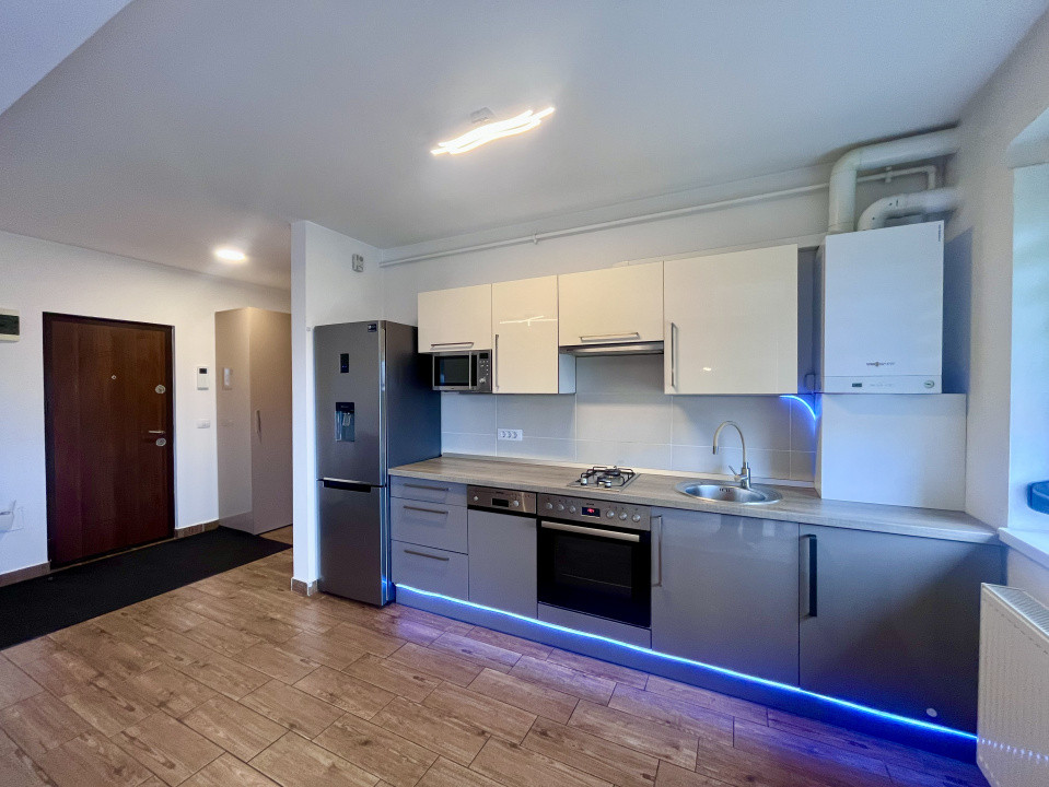 Proprietatea este mobilată și utilată complet, fiind pregătită pentru mutare imediată. Printre dotări se numără mașină de spălat vase, cuptor cu microunde, aer condiționat, obloane la geamuri pentru un plus de intimitate și confort, precum și boxă pentru depozitare și loc de parcare privat.