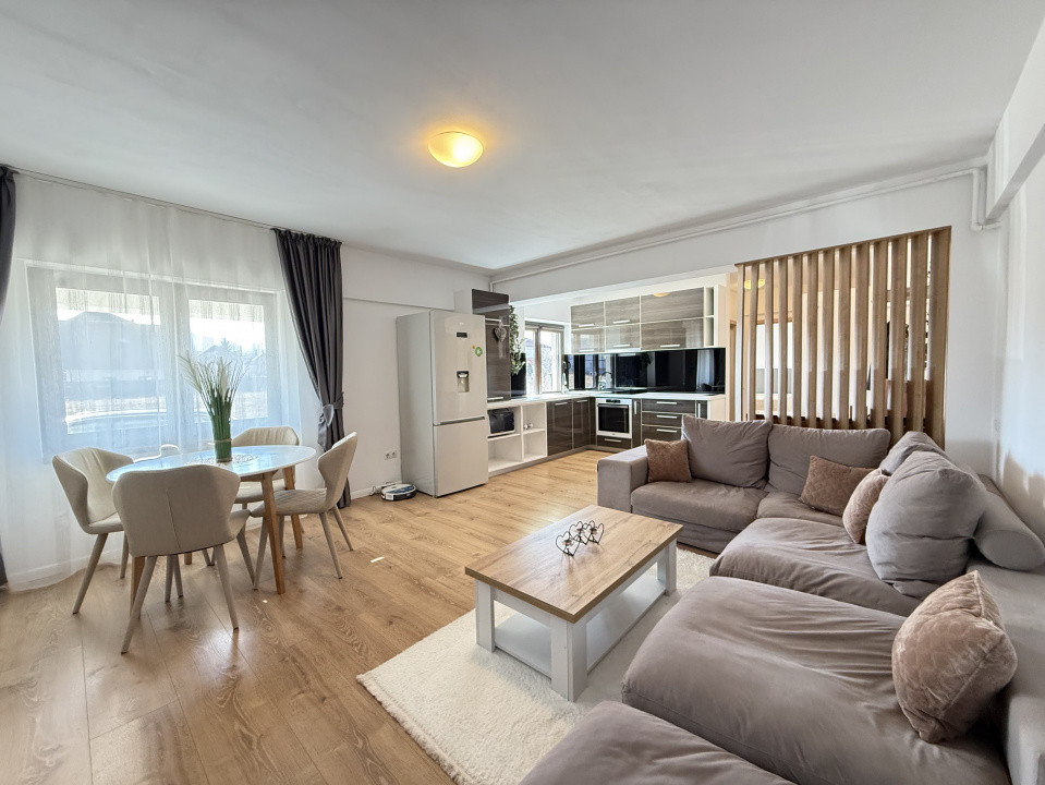 Apartamentul te intampina cu o atmosfera luminoasa si primitoare. Renovarile recente au inclus modernizarea tuturor finisajelor și mobilierului, astfel incat vei gasi un interior elegant si contemporan.