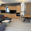 Bucătărie complet mobilată și utilată, echipată cu electrocasnice moderne.