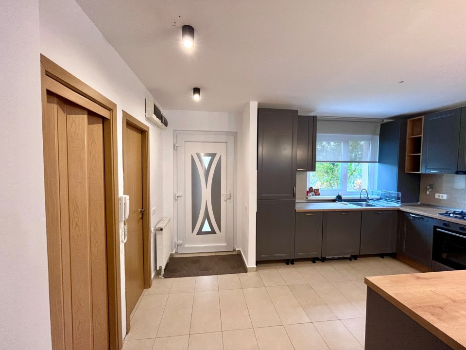 Kronhouse Real Estate va propune spre inchiriere un apartament 4 camere, la casa in Complexul Green Valley, in apropierea Lacului Noua si la cateva minute de gradina zoologica. Locuinta are o suprafata aproximativa de 135 mp, cu 3 bai si o gradina tip terasa de aproximativ 30 mp. Imobilul este structurat astfel :P+1+M: La parter avem: bucataria open-space cu livingul, wc de serviciu, debara si gradina tip terasa. La nivelul 1 avem: 2 dormitoare, dressing si baie cu cada. La mansarda avem: dormitor, dressing si baie cu dus. Apartamentul este mobilat si utilat complet. Nu se accepta cu animale de companie in locatie, fara studenti. Proprietatea dispune de 1 loc de parcare in cadrul complexului. Utilitatile nu sunt incluse in chirie. La chiria afisata se adauga T.V.A de 21%. Conditii de inchiriere: o luna in avans, o garantie de 900 EURO si comisionul standard al agentiei de 50%. Pentru detalii suplimentare, nu ezitati sa ne contactati. 0726 684 207.