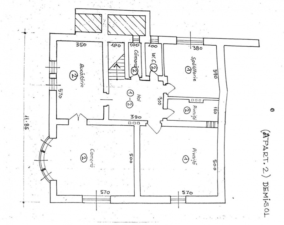 * demisol: hol, doua camere generoase, baie, pivnita (2 incaperi), spalatorie