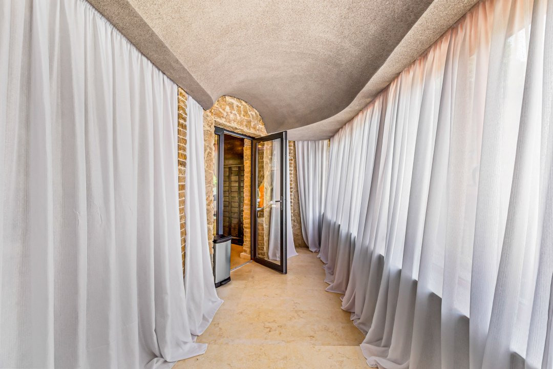 • Cameră de intrare în zona piscinei cu marmură, piatră naturală, lumini pe senzor