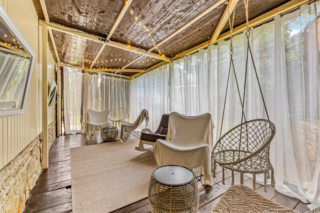 • Terasă acoperită în apropierea râului – spațiu de relaxare și meditație tip „cave”