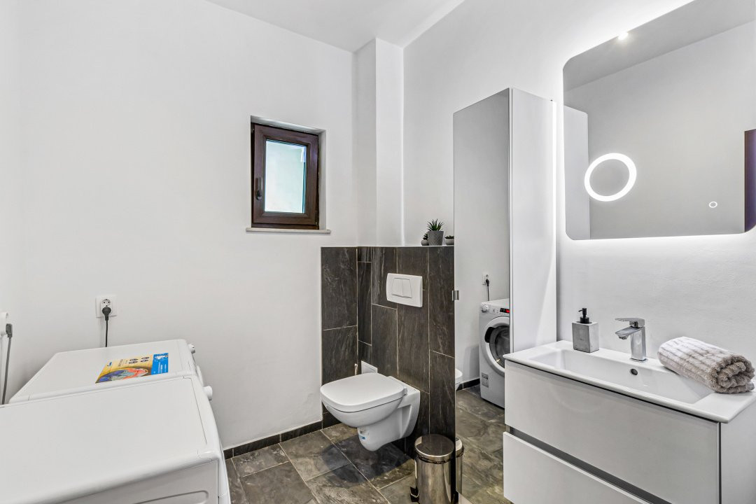 • Baie de serviciu cu mașină de spălat și uscător