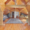 La etaj, pe o suprafață de 93,39 mp, se află biblioteca, bucătăria cu loc de luat masa, cămara și două terase.