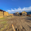 Construcție din lemn, cu podea din pământ;